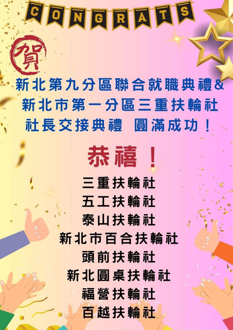 恭賀! 新北市第九分區 聯合就職典禮 & 新北市第一分區 三重扶輪社 社長交接典禮 圓滿成功!