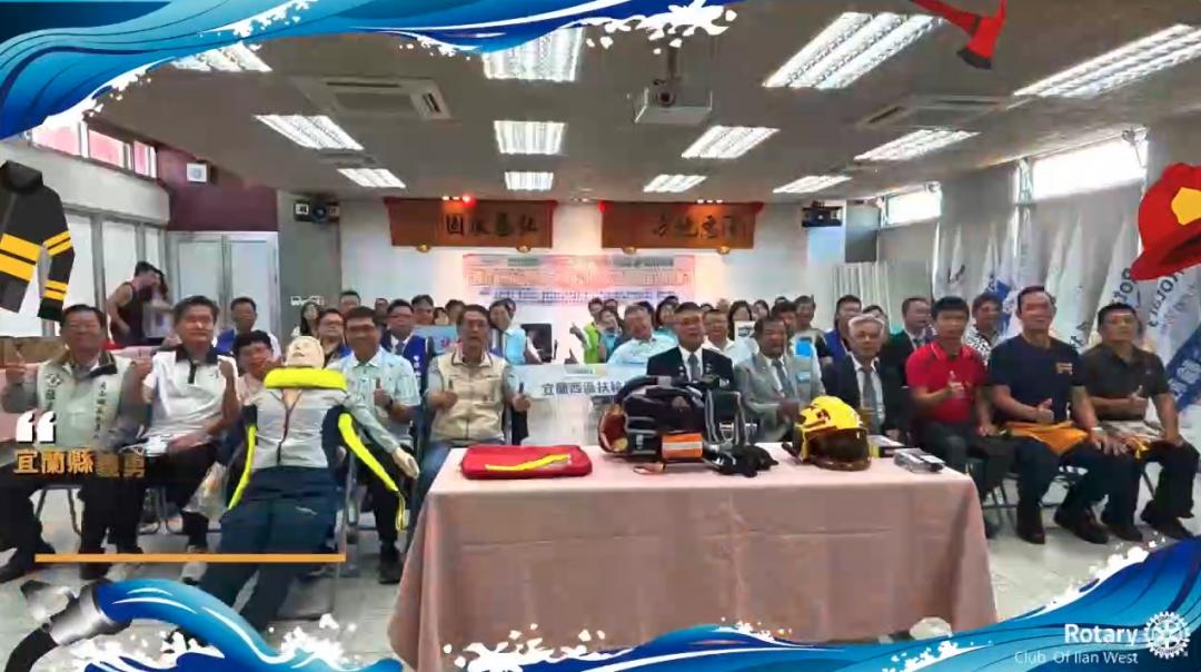 感謝宜蘭西區扶輪社張章堂社長號召,結合宜蘭縣第一、二分區共16個扶輪社,並聯手 D3481 地區新店社、台北信義社、台北永東社,以及 D3460 地區霧峰社,共同捐贈火災搶救裝備器材予宜蘭縣消防局員山分隊,協助提升消防隊員的安全防護與救災效能。